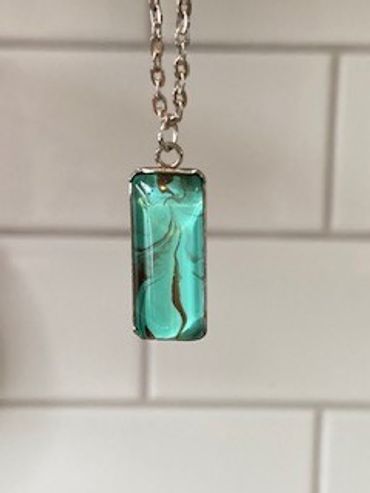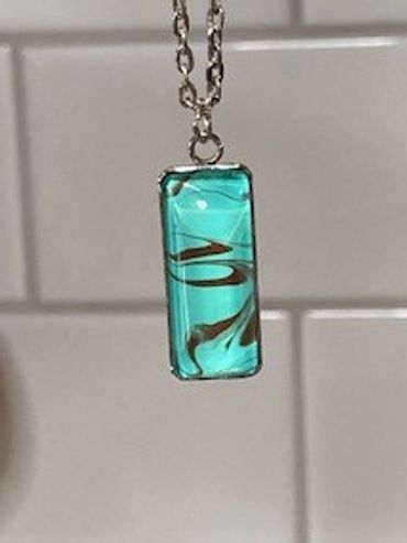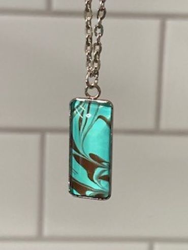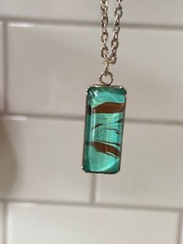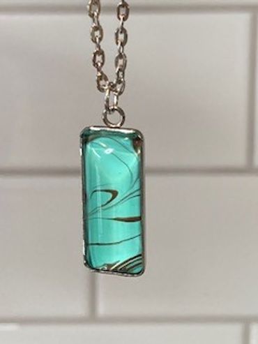 Our pendant settings are of a metal alloy a/o stainless steel. People allergic to certain metals should refrain from wearing these close to their skin.